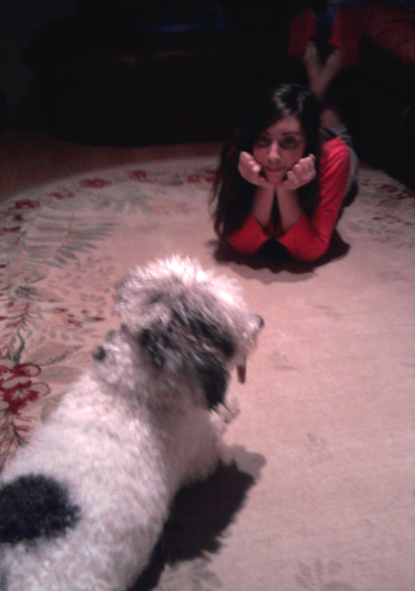 RE: Poze cu noi - Alice Morris - 26 Dec 2012 Pe la sfarsitul lunii Noiembrie, la mine in clasa, dupa vreo 9 ore de stat la scoala. Imi place poza in care ma stramb, nu stiu de ce Imi place ca e mai ciudata, nu imi place in mod special cum am iesit ![]() * ** Si o poza cu mine, si catelul meu Puffi, pe care l'a adus Mosul anul trecut in Ajun, si acum e baiat mare. Si da, eu sunt in pijamale, stiu ![]() *** RE: Poze cu noi - Julieta D. Thibault - 26 Dec 2012 Awww esti asa draguta :3 iti ador pufosenia:>